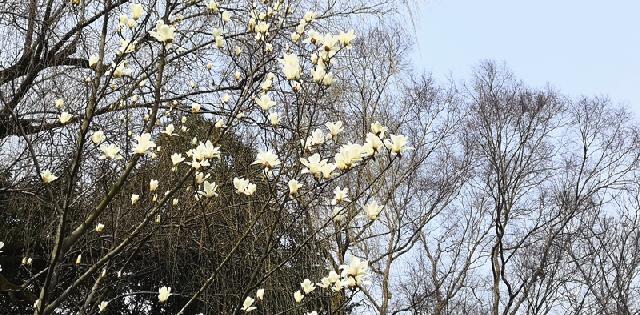 最近几天,充足的阳光、适宜的气温使得中山公园内不少鲜花都绽放了,其中就有上海的市花白玉兰。