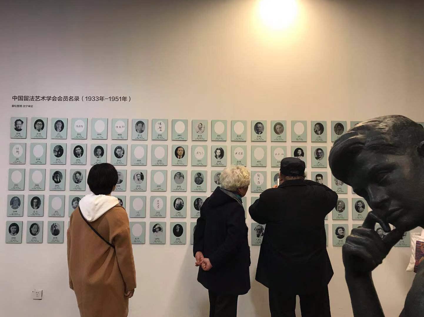 从画展的背景墙上看到,上百位留法艺术家中,有很多人只留下了一个名字,连照片和生卒年份都找不到;有的人到法国刚开始并不是学绘画的,而是学的音乐、建筑、物理、地质等专业,这也导致日后他们的美术史资料缺失。