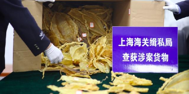 3月10日,上海海关在浦东国际机场成功截获一批鱼鳔。经查验,箱内共有鱼鳔122个,均为加湾石首鱼鱼鳔,该鱼类属《濒危野生动植物种国际贸易公约》附录I物种。