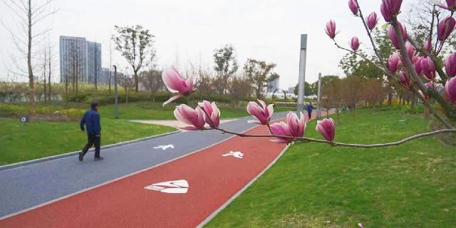 记者在黄浦滨江绿道世博园段看到,目前去年冬季盛开的山茶花还未凋谢,早春的樱花、郁金香已经开始绽放,数棵并不高大的玉兰树上满满的玉兰花开得正好……