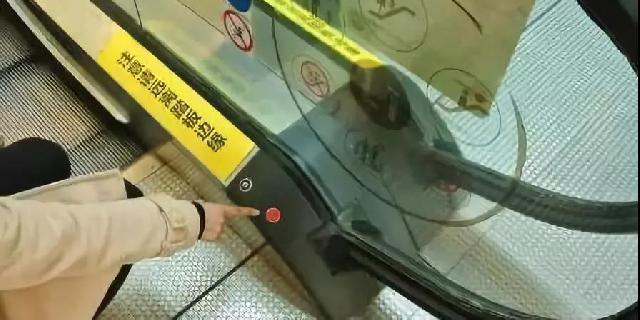 7、扶梯的一端有一个红色的紧急制动按钮,一旦出现了意外,可以第一时间按住按钮,使电梯停止运行。