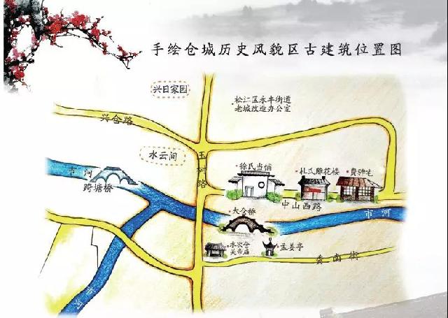 大仓桥——仓城历史文化风貌区——秀野桥——思鲈园——西林禅寺——程十发艺术馆——清真寺——庙前街——唐经幢——云间第一楼——上海方塔园——松江博物馆——松东路