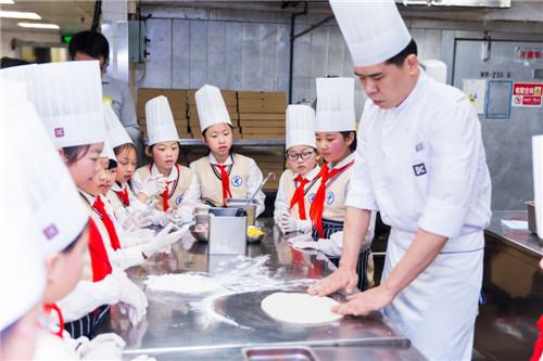 与此同时,中兴路小学的一些家长,还将学生们领进自己的单位,参观学习,开展职业体验活动,感受劳动的美丽和价值。在静安昆仑大酒店,学生们戴上厨师帽,跟随大厨走进了他们的厨房,学习披萨制作技能,学习吃西餐和酒店接待礼仪,经历了一段意义非凡的职业体验活动。