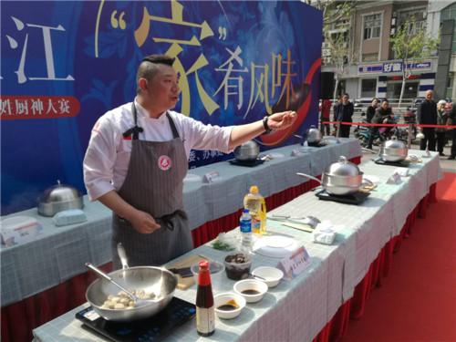 鲜嫩可口的“荠菜笋炒年糕”、酱香味浓郁的“砂锅焗鮰鱼”、清香爽口的“马兰头拌香干”……4月17日下午,五月花生活广场犹如美食广场般菜香气味浓郁,各类花色菜肴、点心琳琅满目,由芷江西路街道主办的“海派芷江·‘家’肴风味”——第四届芷江“百姓厨神”大赛,正在热闹举行,21位从各居民区选拔出来的百姓烹饪高手,在台上向前来观摩的居民展示自己的厨艺。