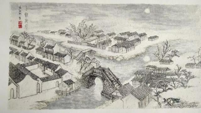 此画景活灵活现的再现了“南山古寺”和“千秋桥”古景。