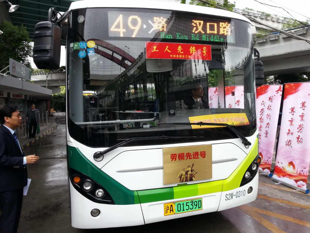 以这辆车为代表,49路职工承诺:在劳模精神的指引下,积极投身久事公交“高品质线路”创建活动,不断巩固、提升、发展49路公交服务品牌。