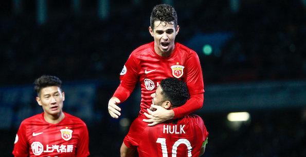 第7分钟,奥斯卡在后场成功抢断,然后直接传球找到了胡尔克,上海队10号高速突破带球杀入禁区,在晃过对方门将后轻松打空门得手。