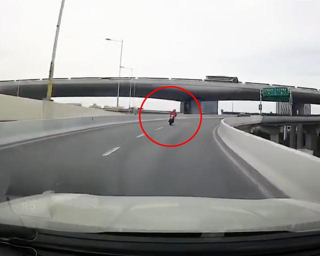 今天下午,一段“骑摩托男子从高架掉落”的行车记录仪视频在网上流传:视频中的时间显示为“2019/05/07 15:48:55”,一名身着红衣的男子违法驾驶摩托在高架上行驶,行至南北高架南向北转中环共和立交匝道处时,摩托车突然失控撞向高架边沿,驾驶员意外撞击后脱离摩托车,瞬间翻越高架围栏,从20余米高的高架上跌落身亡。