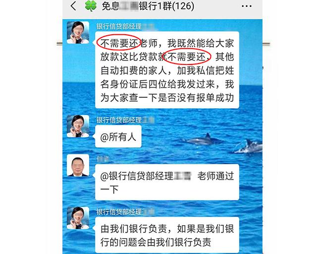 警方调查发现,这些借款人都被自称的“银行工作人员”介绍参加了所谓的“国家精准扶贫”项目。“银行工作人员”在多个微信群内,以“精准扶贫借款不用归还本金和利息”为诱饵,诱骗不明真相的中老年人支付198元的会员服务费。
