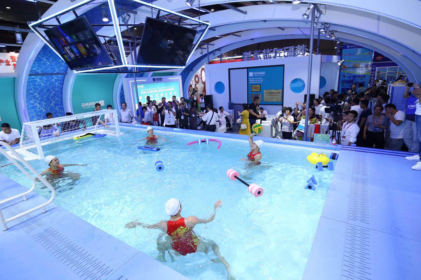 展台现场,国家女子水球队的4名队员,做着水中传球演示。“奥运水球的标准是水深2米,而一般青少年池的水深是1米4,传统泳池在深度上很难兼容,但装配式游泳池就非常灵活,可以一池多用。”主教练葛伟青说。