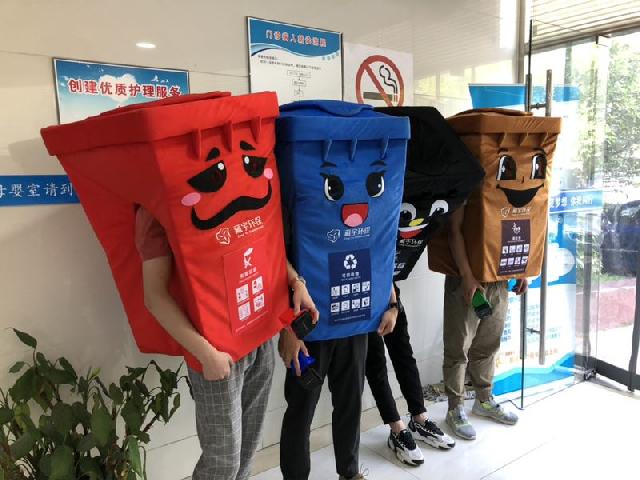 5月21日上午,三康医院门诊大厅异常热闹。由医院党员、团员志愿者组成的“垃圾分类”小分队穿梭在人群中,其中走在最前面的四只由职工扮演的“分类垃圾桶”玩偶分外抢眼。“阿姨,你知道香蕉皮应该丢在哪个垃圾桶伐?”“湿垃圾呀,我晓得的,阿拉小区宣传过的。”一位阿姨自告奋勇,第一个把印有香蕉皮的卡片丢到了“湿垃圾”桶中。随后,志愿者拿出了垃圾分类宣传环保袋,作为奖品。