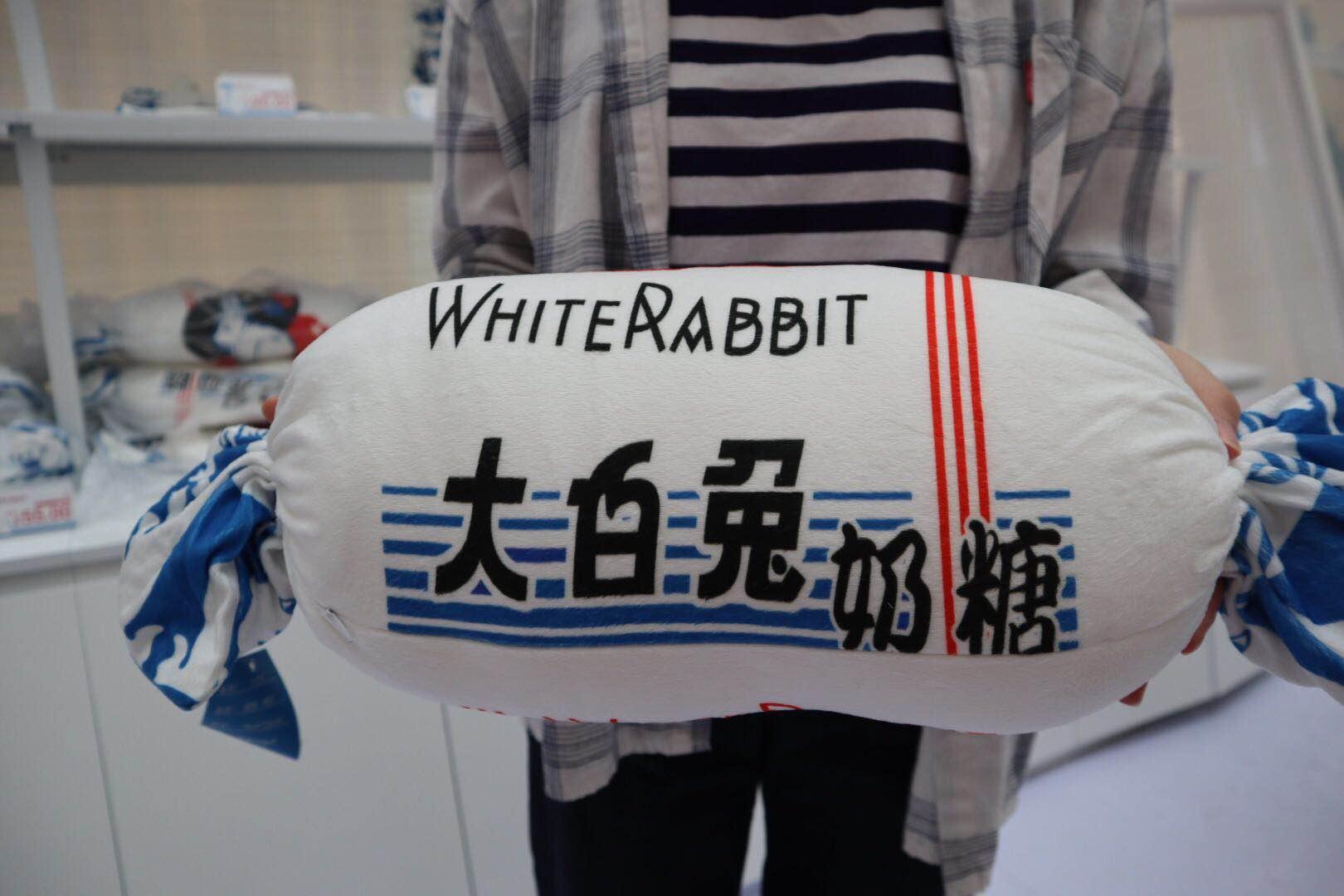 走进“奶糖”,可以看到里面装满了各式各样的大白兔周边。