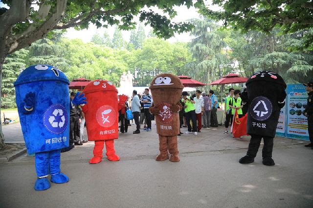 今天上午,由上海人民出版社,上海东方宣传教育服务中心,上海市黄浦区妇女联合会,瑞金二路街道党工委、办事处,以及上海市妇女干部学校联合主办的“垃圾分类新时尚 绿色社区全民行”垃圾分类嘉年华暨世界环境日主题活动在复兴公园举行,一曲激昂的“垃圾桶”打击乐拉开了活动的序幕。
