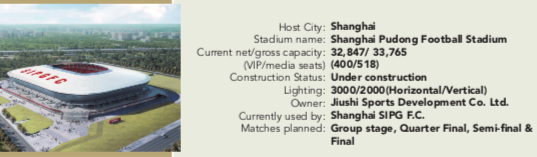 值得一提的是,在这份报告中关于浦东足球场介绍的里,计划举办的比赛为:小组赛、四分之一决赛、决赛。