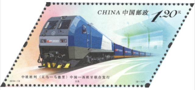 据中国邮政官网,中国邮政定于2019年6月15日发行《中欧班列(义乌—马德里)》特种邮票1套2枚(与西班牙联合发行)。