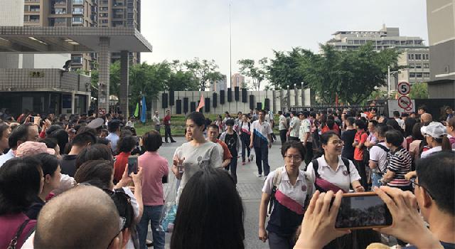 数学考试下午5点准时打铃,七宝中学和华东师大一附中考场没人提早交卷,等待家长们在考场外就开始猜测,数学会不会比较难?