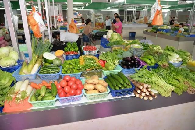 各类时令蔬菜,各种颜色交错分布,鲜嫩水灵。
