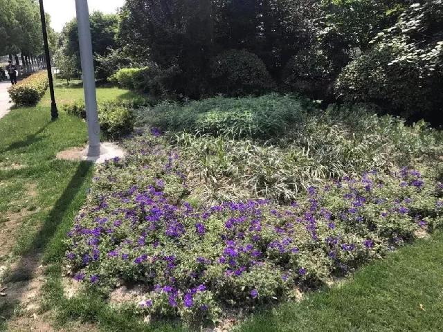 车墩镇园林公司在场地中视觉焦点的位置还分别布置几组花境,花境中的花本包含数十种不同的种类,有矮蒲苇、紫穗狼尾草、枸骨球、水果兰、金叶女贞球、银姬小蜡球、金银花、鸡爪槭、迷迭香等等,同时还增加了中草药园,能帮大家科普一下中草药植物知识。