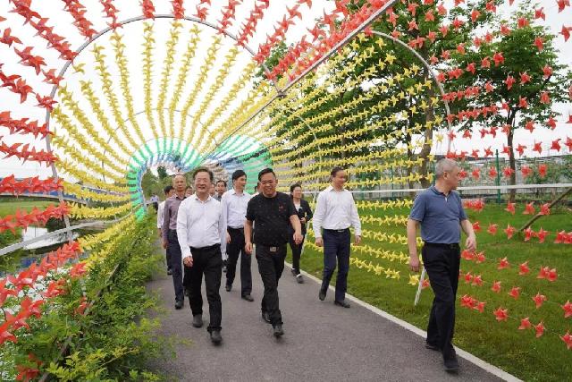 随后,一行人又来到张马寻梦源,对园内景观设计、花卉培育、水生态建设、休闲娱乐项目等方面进行了全面了解。沈金明表示,这里的香草农场结合了都市的精致感和田园的乡野趣味,通过考察交流,进一步开阔了视野,拓宽了思路,为深化乡村振兴战略内涵、加快长三角一体化发展等起到了积极作用。