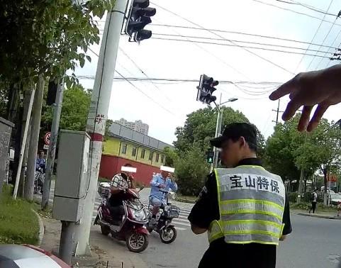 6月13日上午,宝山公安分局罗泾派出所民警俞侃在配合分局交警开展行人、非机动车交通违法整治期间,拦下了2名遇红灯超越停车线停车的电动自行车骑车人,并对他们的交通违法行为分别处以30元罚款。