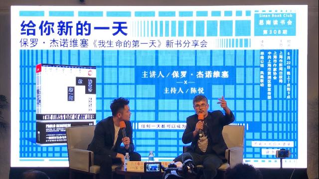 ■《我生命的第一天》新书分享会现场 主持人陈悦(左)与保罗(右)对谈