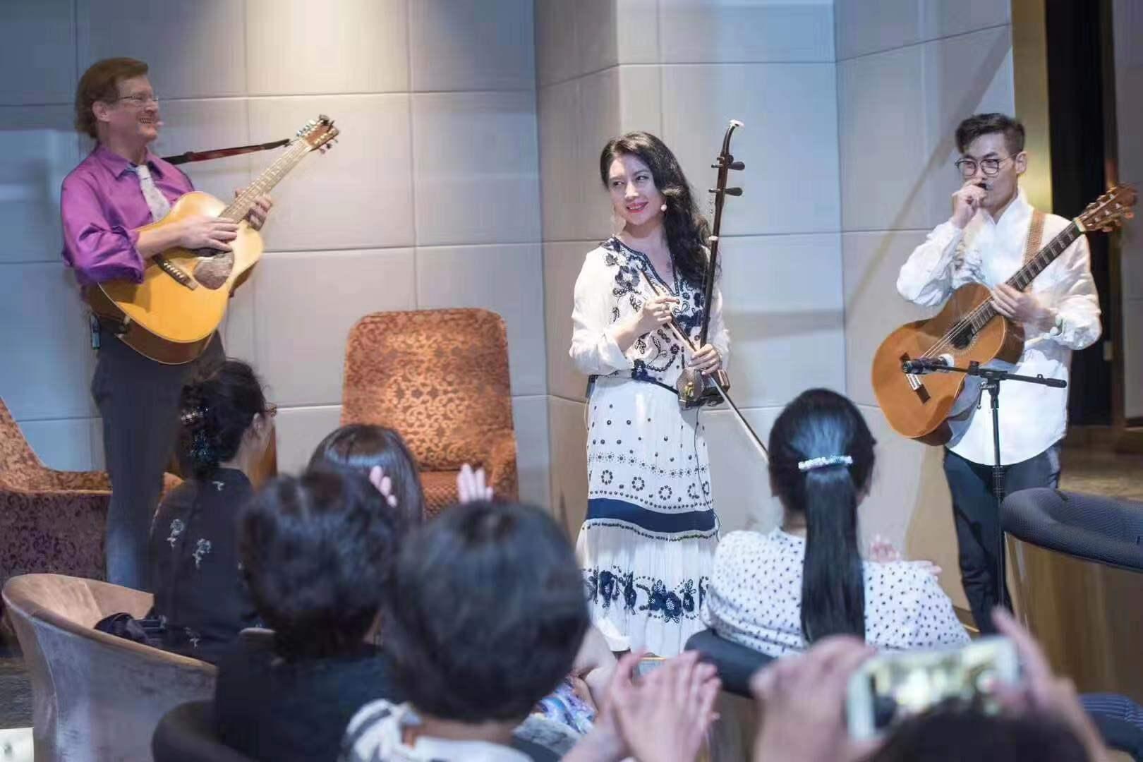 此次沙龙以“茶语音律,刹那芳华”为主题,特邀著名海派民乐家马晓晖,讲述音乐的奇妙魅力。现场将东方国粹二胡与西方乐器吉他完美交融,也有德沃夏克《幽默曲》、弗兰克·辛纳屈《My Way》、英国民谣《绿袖子》、邓丽君《恰似你的温柔》经过改编的二胡曲。在她的手里的二胡成为叙述者,让在场的观众听见了声音,也看见了色彩。而一曲《赛马》将整个沙龙的气氛推向高潮。