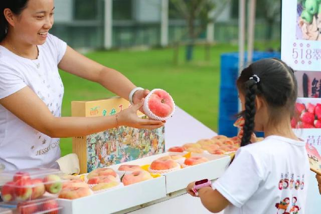 除了今天的主角“皇母”蟠桃,开幕式上,施泉葡萄、敏蓝蓝莓、绿田火龙果等当地特色水果,以及来自“田园五镇”的优质农产品汇聚一堂。
