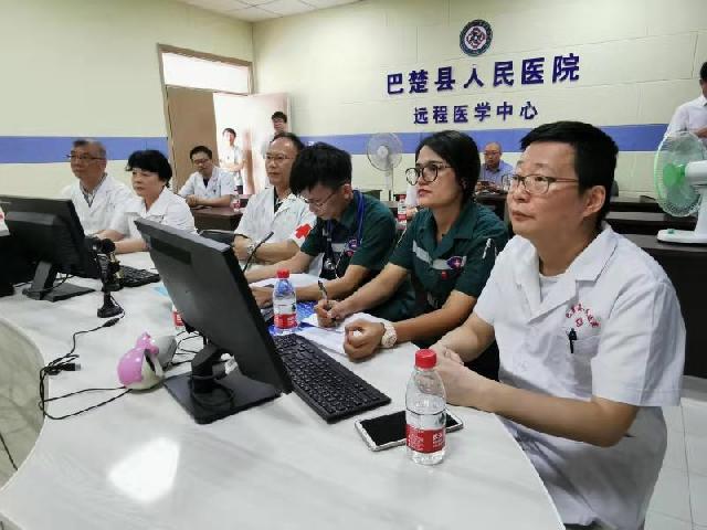 收到会诊请求,闸北中心医院医疗事业部立即组织心内科、呼吸科、急诊科、药剂科、护理部6名专家迅速到位,通过网络第一时间查看患者CT、心电图、彩超等辅助检查情况,通过机器人“小楚”与患者、当地医务人员等直接沟通交流,细致观察患者体征,从临床诊断、合理用药、日常护理等方面给予了专业、详尽的指导,并分享了上海地区相似病例诊疗方法,结合巴楚地区气候等特点,与当地医务人员一起为患者拟定了全周期治疗方案。
