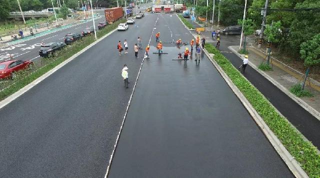 尤其精心的是,建设者于上月27日,在江杨北路友谊路路口东南侧机动车道进行了半柔性沥青路面摊铺,道路路面的通行质量已大为提升。