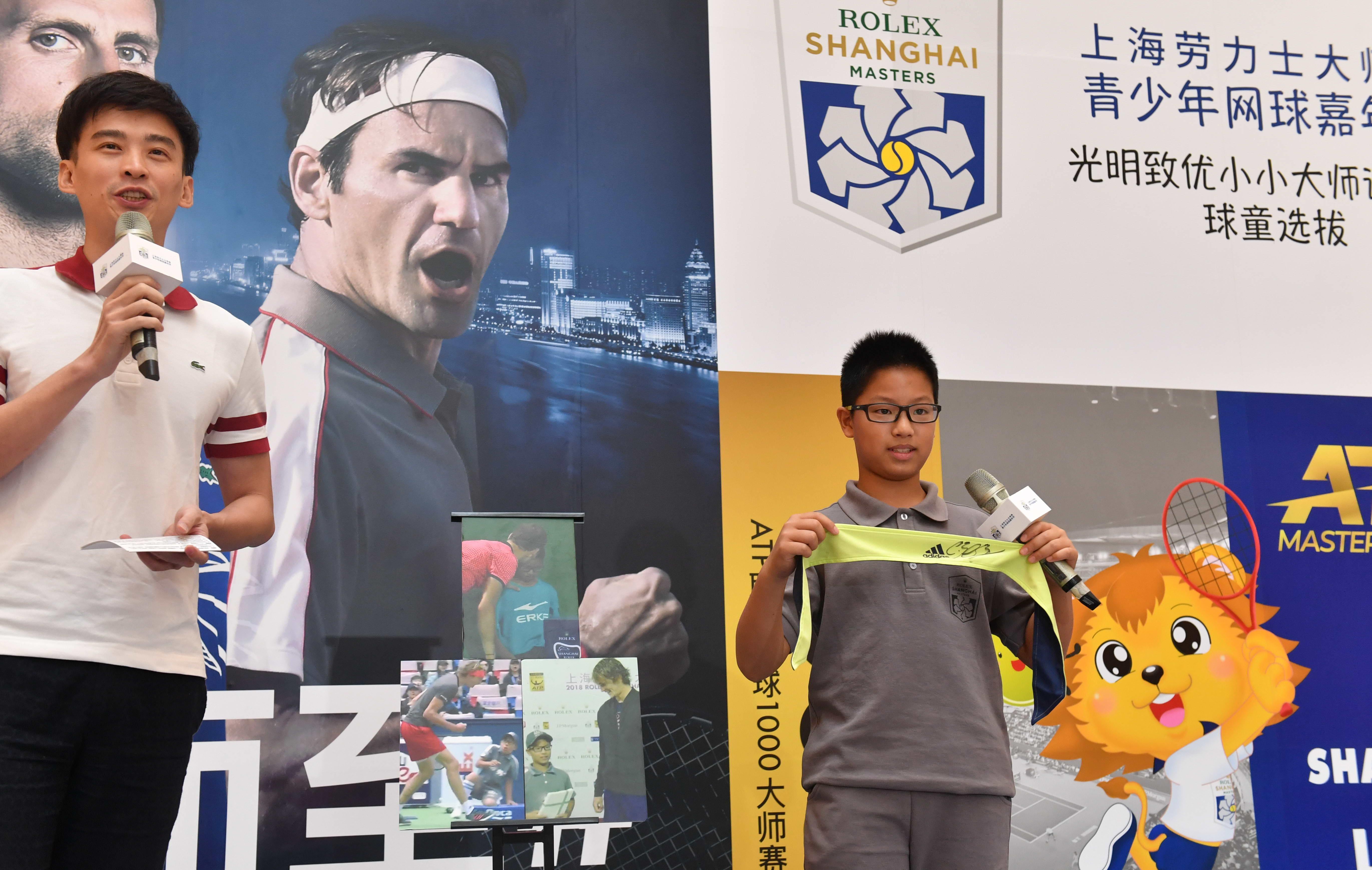 活动现场,还特别邀请了上海劳力士大师赛球童界的“三朝元老”陈家瑞同学。2016年他被波斯皮希尔发球打到肚子,当场哭鼻子,迪米特洛夫赶紧跑过去安慰,还送了他一个腕带;2018年兹维列夫在网前得了关键一分后爆发式庆祝,吓得他浑身一抖,“小紫薇”赛后拉着他一起接受了采访,还送上签名发带。作为资深前辈,陈家瑞也对今年的大师赛小球童给出建议:保持专注、动作规范,向大师们学习。