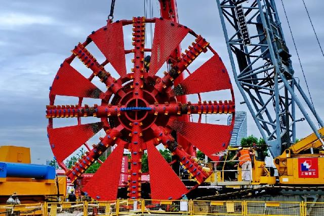 此次工程共分暗埋段、敞开段、工作井和盾构段4部分,在浦西段和浦东段各设一个工作井。江浦路越江隧道西线总长781米,隧道中设置一处联络通道,西线隧道掘进采用直径为11.63米的国产泥水平衡盾构机。
