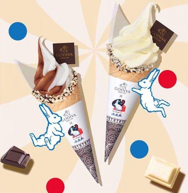 这次售卖的产品有GODIVA大白兔双色冰淇淋和GODIVA大白兔冰莹,双色冰淇淋和冰莹都是GODIVA既有的产品。