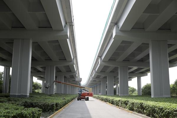 “我们主要有三个目标。首先是要维护好高架结构,对承担繁重交通功能的高架混凝土、钢结构进行维护保养,保障高架结构安全;其次是进行外观涂装整治,给高架做好美颜;最后,所有的施工任务必须在最短时间、最小影响的前提下完成,不给市民、给旅客带来困扰。”隧道股份城市运营一纵两横涂装现场项目部负责人周兰兰向记者介绍说。
