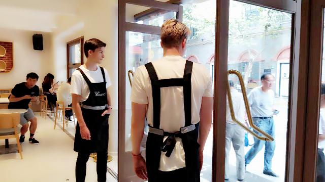 门口迎客的是两位高大的“老外”帅哥,吸引了不少眼球。
