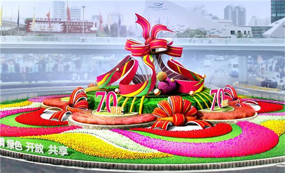 陆家嘴环岛中央的立体绿化景点一直以来也是地标绿化景点之一。据悉,今年该处绿化景点名为《同心共荣》,景点面积约1800平方米,以庆祝国庆70周年为主题,通过巨型花卉“丝带结”,寓意全国人民上下一心,团结奋进,建设“一带一路”,共享共荣实现中国梦。景点运用大量花卉材料和丰富的植物搭配,体现精致园艺与时代气息,夜景也将采用动感灯光秀打造国庆赏灯之夜。“双迎”期间主要选用花卉品种有何氏凤仙、一串红、玉龙、三角梅、银叶菊、玛格丽特、角堇、茶梅、报春花等。