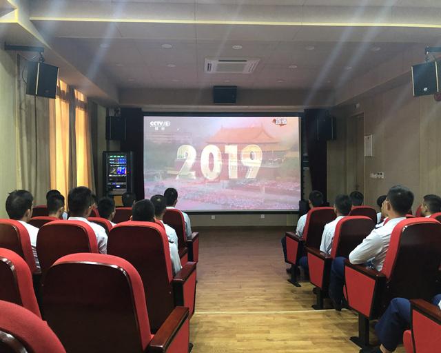 上海市化工区管委会组织各职能部门负责人与化工区消防救援支队的消防员们一起观看了庆祝中华人民共和国成立70周年大会。