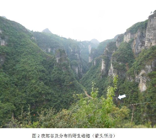 夜郎谷位于贵州省最东部的万山特区和南部接壤湖南新晃县的峡谷,为云贵高原苗岭山脉东延末端、雪峰山脉以西、武陵山脉以南的结合部。谷长14公里,山底直接切割深度200-300米。这里气侯温和,景色迷人。喀斯特地貌奇形异状,三步有景,百步藏险,蔚为奇观,植被覆盖也很好,2003年被贵州省人民政府公布为省级名胜区。此次不仅发现了这片大面积的珍稀蜡梅自然群落,在仅仅一天的植物考察中就采集了有花或果实的植物标本130多种,可见其植物多样性也很丰富。