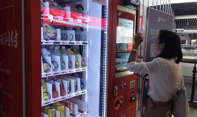 智能自动售卖机可实现人脸识别,只要选好想要的商品,站在摄像头前“刷脸”支付即可。