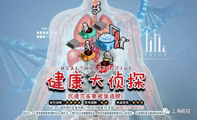 欢迎市民关注“上海疾控”微信公众号,点击公众号下方专题活动栏目中的“健康大侦探”进行预约参加密室逃生主题馆体验,为人类战胜结核病、艾滋病和病毒性肝炎贡献你的智慧和勇气,在疾病健康知识的传播中发挥正能量!