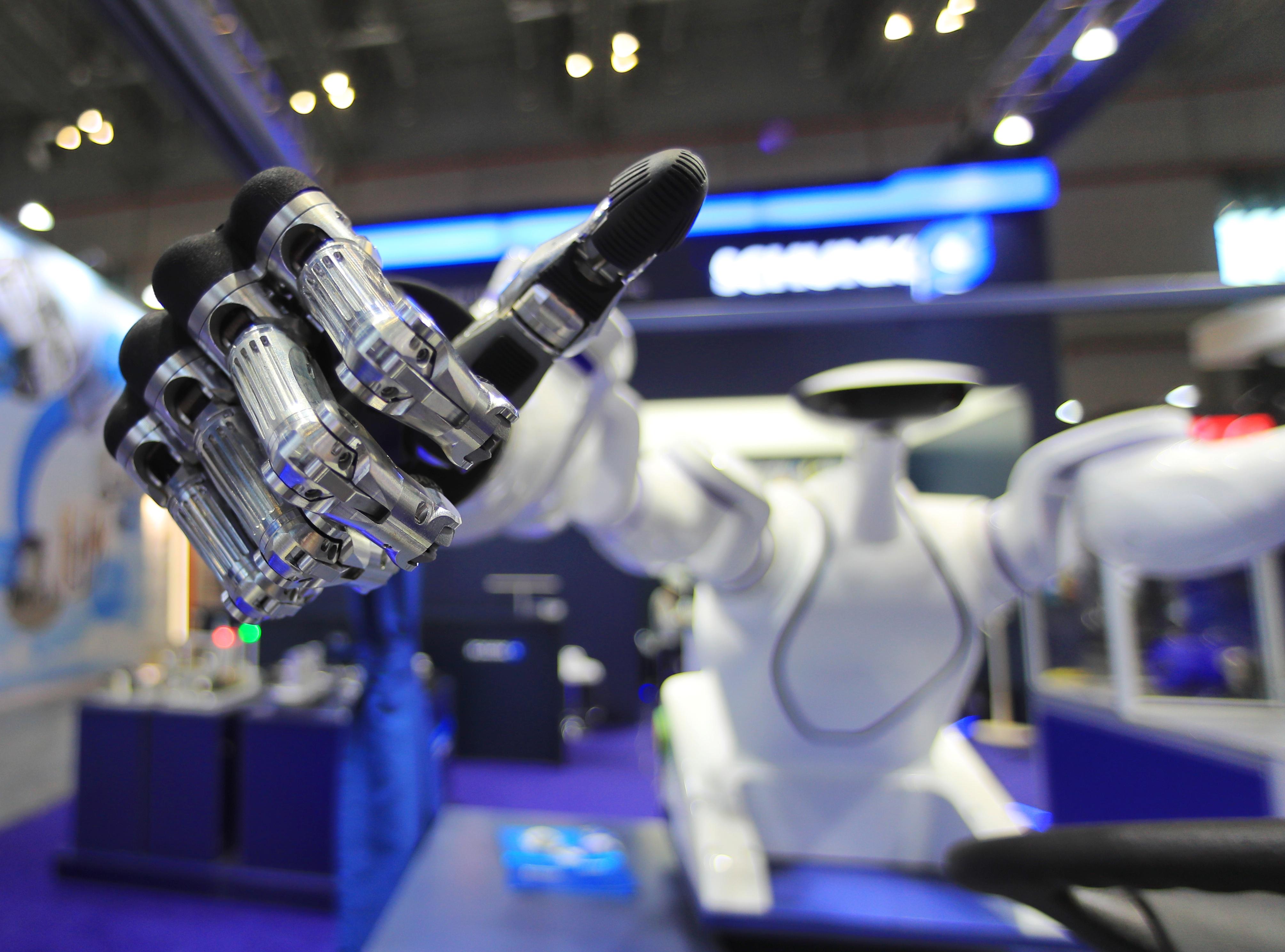 进博会装备展区,德国雄克公司(SCHUNK)展台,仿生机械手正在操控方向盘和排挡,手指灵活犹如真人的手指。据工作人员讲,这款五指机械手可以执行不同的抓取动作,细到拾取一根针、手拿钥匙开锁等。