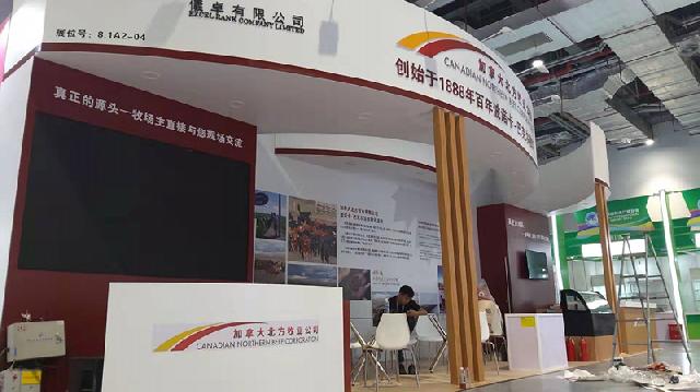 馆内,周到君看到了不少来自国外的牛肉产品,其中,加拿大北方牧业公司的“雪花黑毛牛”独具特色。现场展位已经基本搭成,一只“萌萌哒”大牛公仔就位,只等着掀开“盖头”来欢迎参观者们。