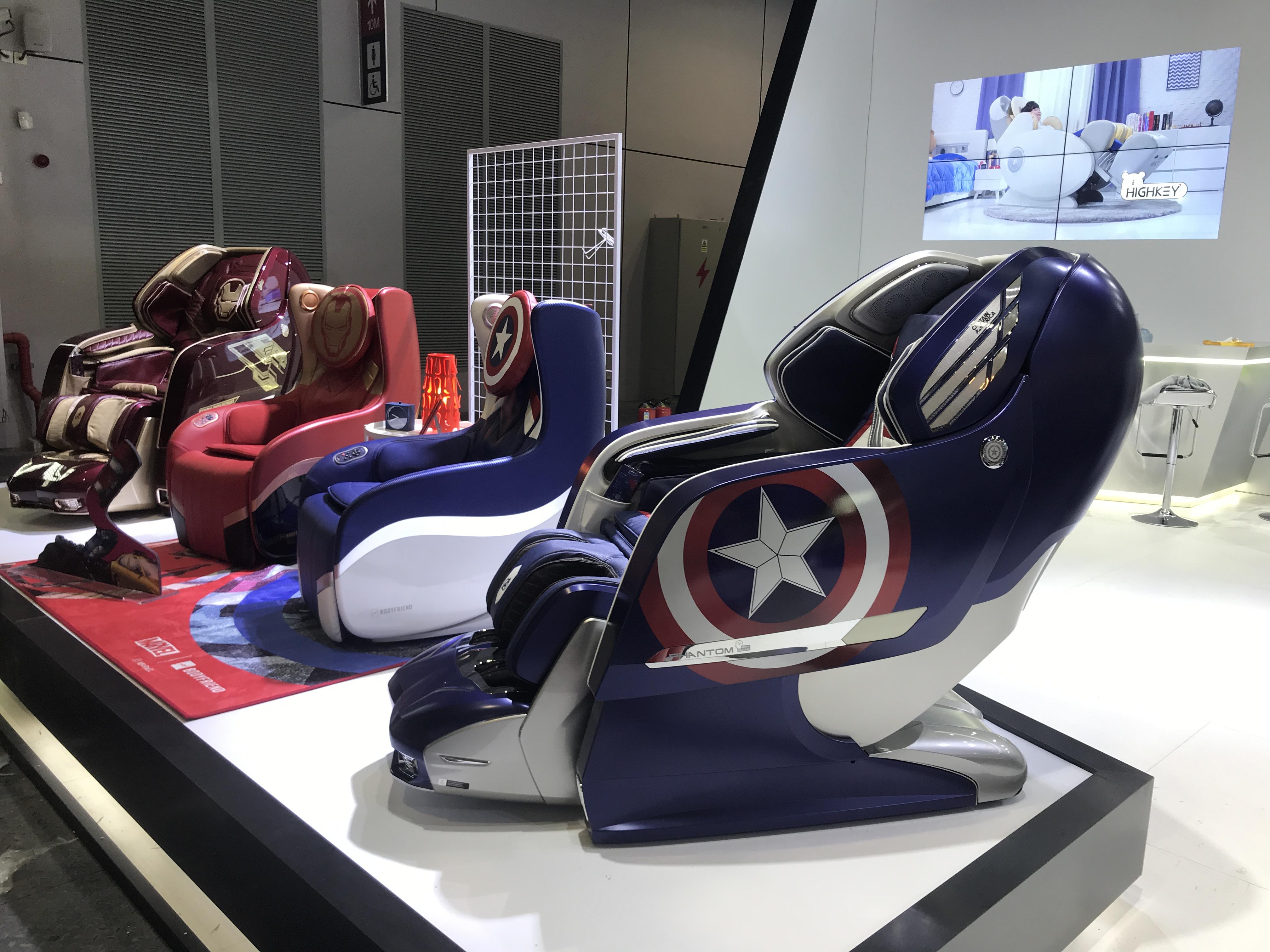 按摩椅大家想必都不陌生,但按摩椅品牌为了参加展会,专门带了辆兰博基尼来,你们有见过么?记者在6.2号馆品质生活展区里的BODYFRIEND展位看到,除了按摩椅产品,展台上还停着一辆暂未揭开面纱的车。据工作人员介绍,待展会开幕后,这辆兰博基尼才会正式“露脸”。据悉,该品牌推出的兰博基尼按摩椅是一款运用在跑车上的尖端按摩椅产品。 此外,除了“中规中矩”的款式,现场还有“漫威专区”!你是想选“美队款”,还是“钢铁侠款”呢?(记者 谢增)