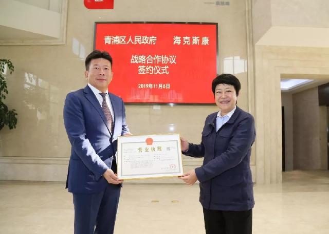 绿色青浦微信公众号消息说,11月6日上午,青浦区政府与海克斯康签署战略合作框架协议,青浦区委书记赵惠琴为海克斯康大中华区总裁李洪全颁发了证照编号末四位为“0001”的营业执照,标志着第二届进博会首个企业项目落户青浦。