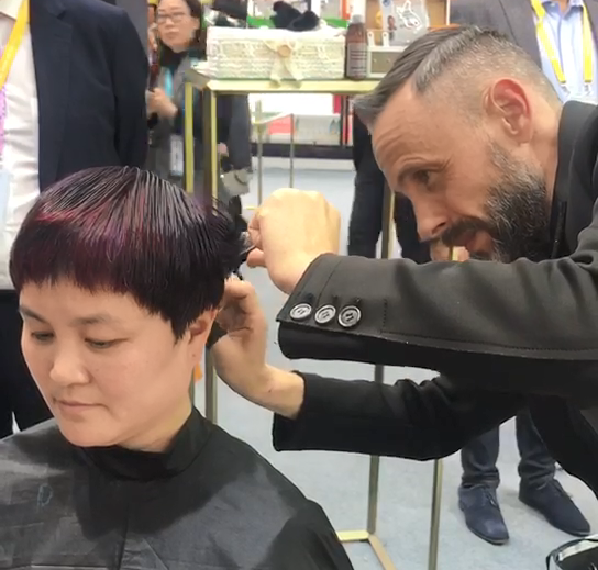 在进博会现场,首次来到中国的意大利美发品牌HELENSEWARD展台上排起了长龙,大家都等着意大利帅哥操刀剪个漂亮发型。刘女士其实来上海前刚刚剪了头发,染了新色彩,看到进博会上的各种创意,她又忍不住了,想再换个造型。