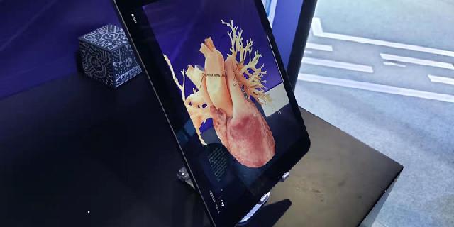 戴尔的AR产品非常适合用于医学教育课程,在现场,周到君看到了一款跳动着心脏的显示屏。显示屏的背后只是一个小盒子作为“参考物”,但拿起“参考物”转动,屏幕上的心脏模型便也跟着转起来,完全可以实现360度全方位的展示。