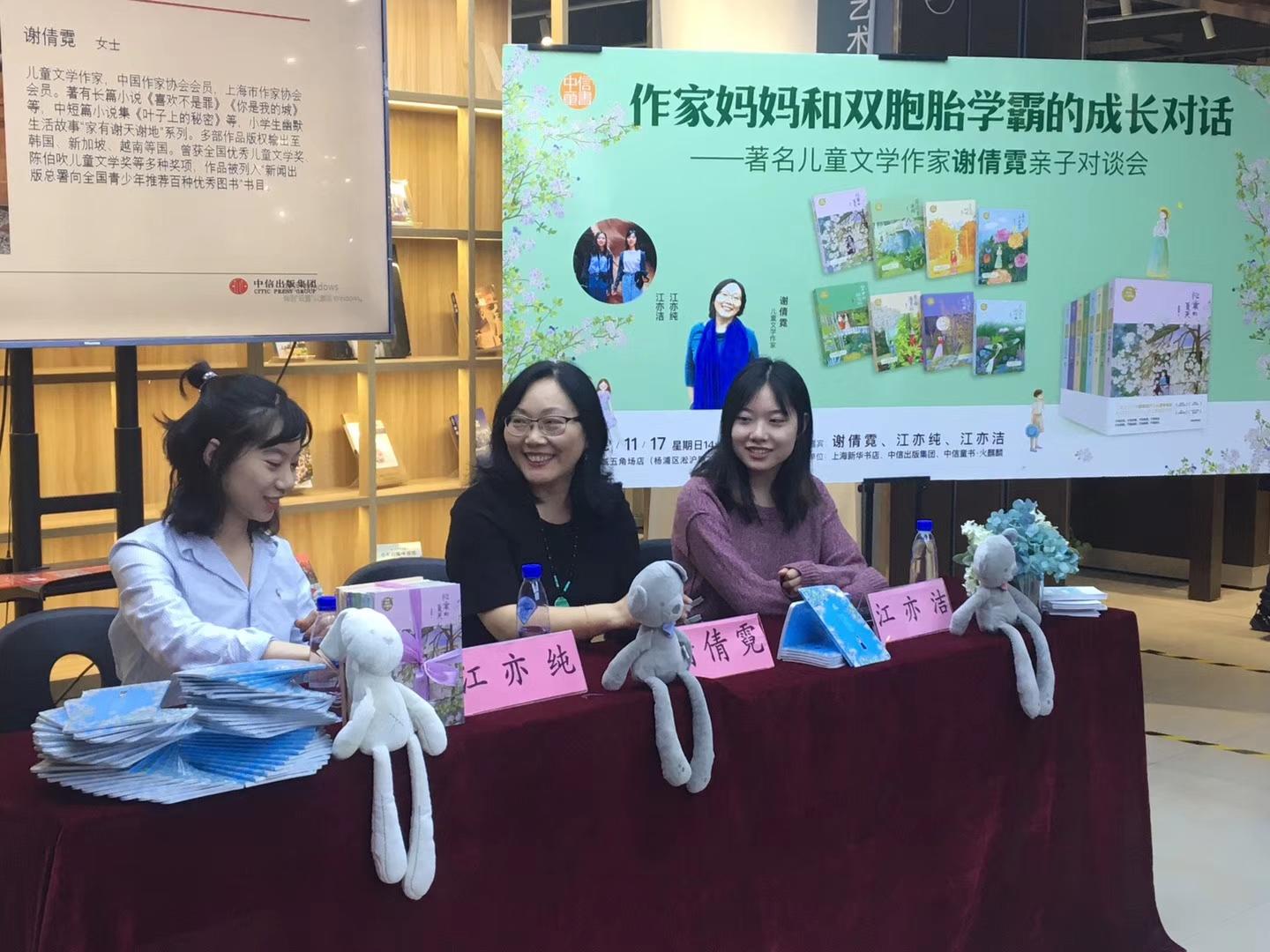 日前, 由中信·火麒麟童书、上海市新华书店联合主办的“作家妈妈和双胞胎学霸的成长对话——著名儿童文学作家谢倩霓亲子对话会”在上海书城五角场店举行。