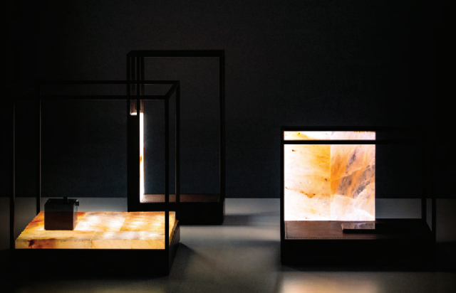 在CHI WING LO 卢志荣展区, EGLI 台灯系列吸引了周到君在内不少人的目光,而吸引眼球最重要的一点就是灯的材料:喜马拉雅山透光岩盐。
