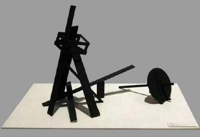 其中,一系列用木质材料制作的立体装置吸引人眼球。作为日本抽象艺术的奠基人,斋藤义重从20世纪60年代末开始,用涂上黑漆的云杉板互相搭置,在经营点、线、面位置的关系时,尤其重视作品结构的开放性。用他本人的话说,在他的作品中“空气可以自由地流动”。他将作品定义为“雕塑”,而不是“装置”,构成意识鲜明体现出日本特有的时空观。