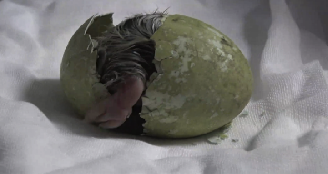 2019年11月30日晚保育员发现第一枚企鹅蛋有破壳而出的迹象,但担心企鹅爸妈没有充足的经验,为保证企鹅宝宝顺利诞生,保育员采取了人工破壳手术,并于12月1日零点整顺利协助阿德利企鹅宝宝诞生。新生小企鹅体重约53克,是正常企鹅宝宝体重的一半,但经检查它的身体非常健康,为让小企鹅在更加自然的生活环境下成长,保育员也在确认企鹅宝宝身体状态稳定后将它送回爸爸妈妈的身边。