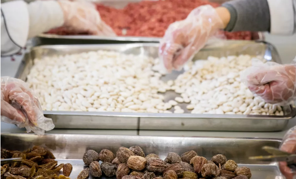 从原材料的选择:精选红豆、莲子、薏米、桂圆、板栗等十四种食材——蜜枣一定是金丝蜜枣,韧性比较强;花生选上乘的红衣花生;红枣选择上佳产地个头适中......